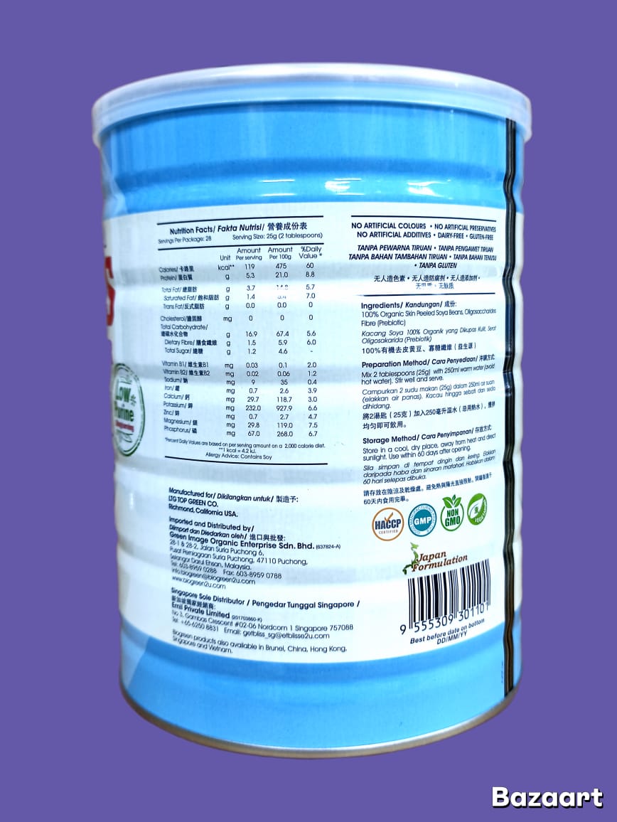 100% Organic Skin Peeled Soya Beans, Oligosaccharides, Fibre(Prebiotic), Cane Sugar