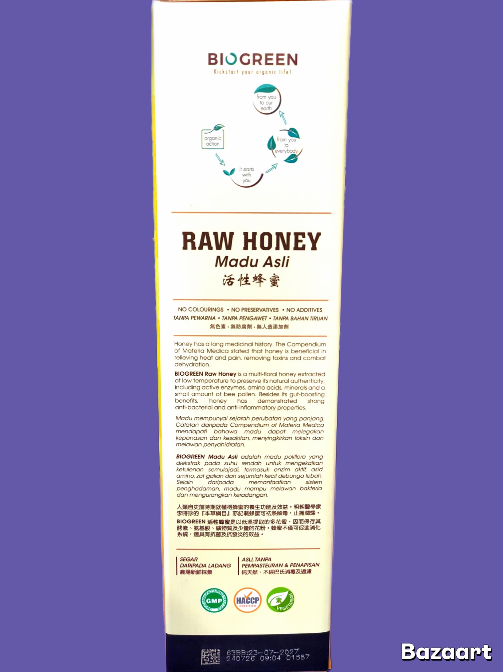 Raw honey can vary in colour from pale to dark yellow depending on floral source. Honey usually gets darker with age. Crystallised honey is normal and does not affect the product quality. Not suitable for infants below 12 months of age.