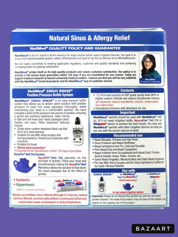 - For use after sinus surgery and for sinus symptoms suffered by cystic fibrosis patients.
