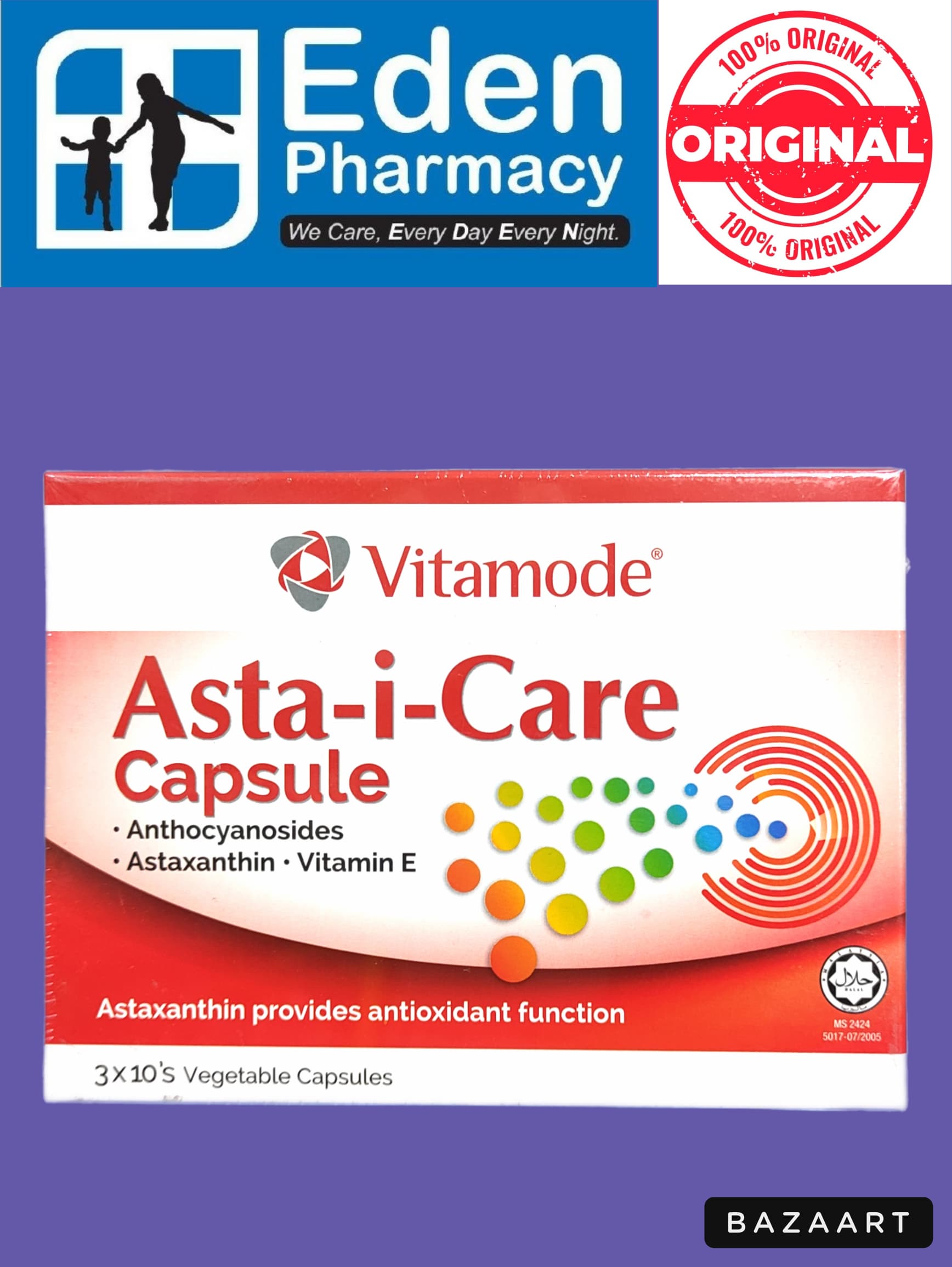 – Triple antioxidant combo: astaxanthin, bilberry extract and vitamin E for complete protection from free radical damage